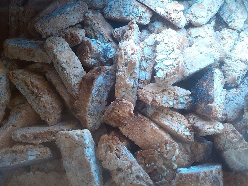 Ingredienti: farina, zucchero, mandorle tostate, uova, sale, lievito a secco,cannella, garofano, noce moscata. Vassoio con contenuto gr.1000