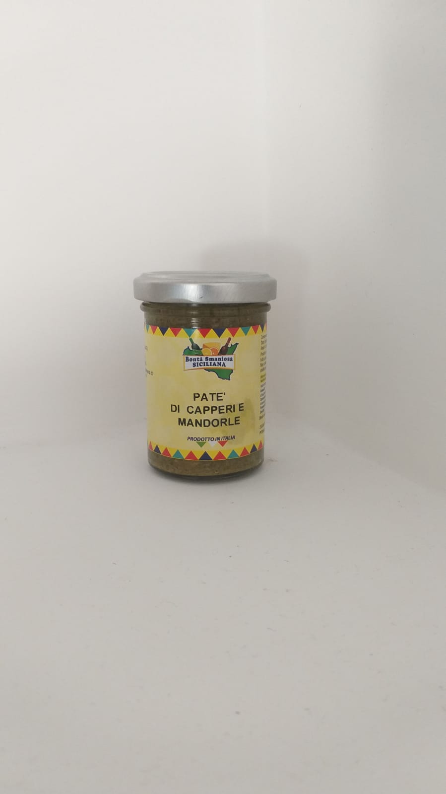 Prodotto artigianale senza far uso di conservanti, coloranti e/o additivi.Ingredienti: capperi 70%, olio extra vergine doliva 22%, mandorle 5%, aceto,aglio, sale pepe.