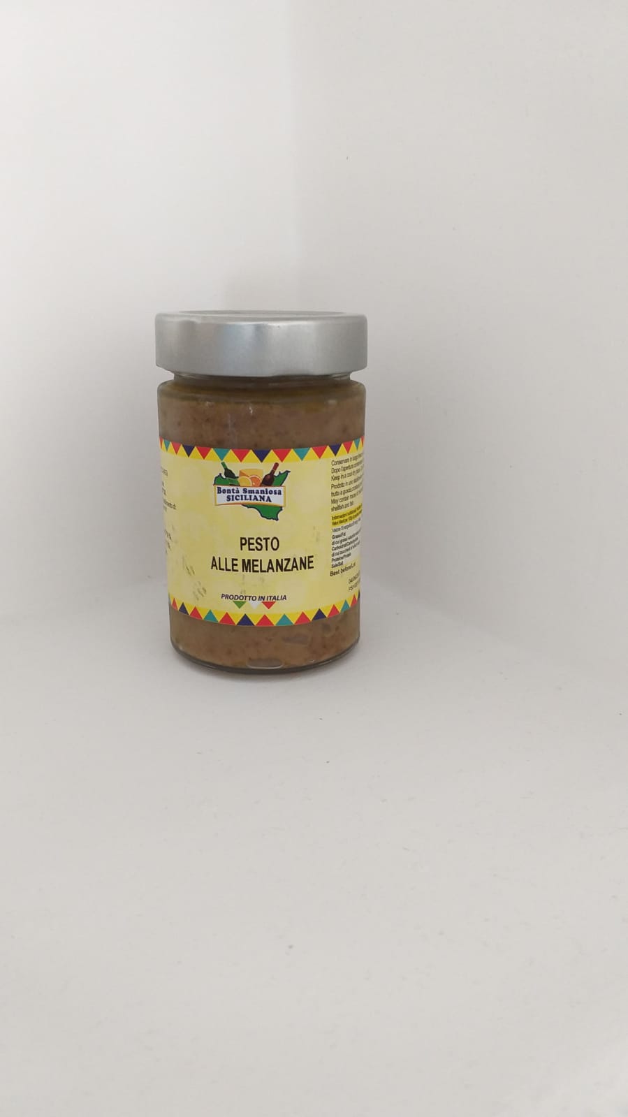 Prodotto artigianale senza far uso di conservanti, coloranti e/o additivi.Ingredienti: melanzane 87%, olio extra vergine doliva 11%, basilico 0,4%,sale, aglio,menta,peperoncino.