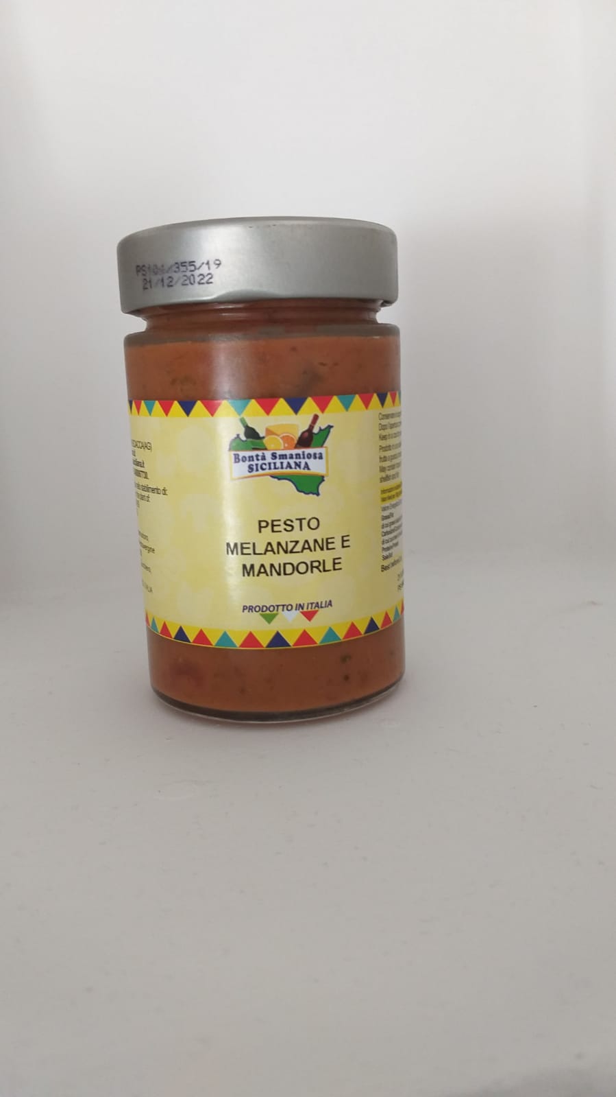 Prodotto artigianale senza far uso di conservanti, coloranti e/o additivi.Ingredienti: polpa pomodoro 47%, melanzane 41%, olio extravergine doliva 7%,mandorle 2%, basilico, aglio,sale,zucchero, menta,pepe.